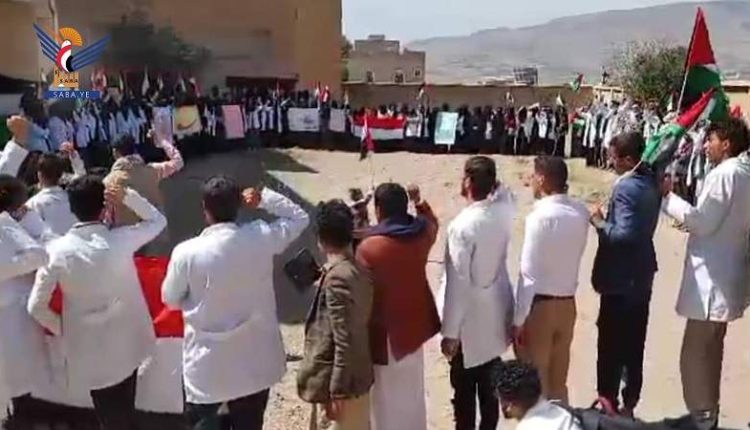 صنعاء.. وقفة احتجاجية بالمعهد العالي للعلوم الصحية تنديداً بجرائم العدو في غزة