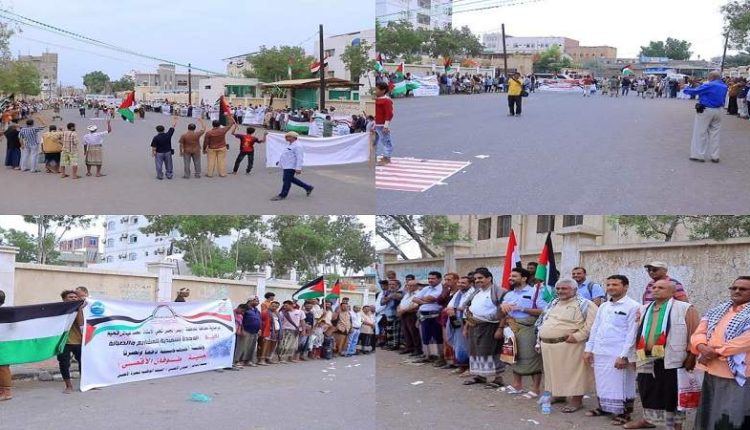 وقفة لعدد من المكاتب الحكومية بالحديدة تنديداً بجرائم العدو الإسرائيلي بقطاع غزة