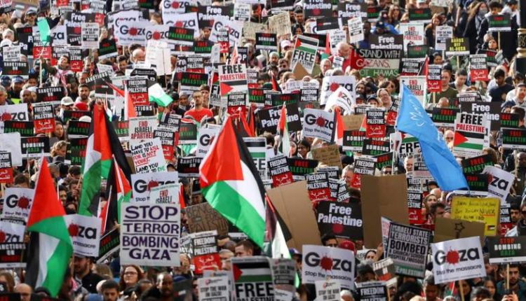 وخرج مئات الآلاف في لندن، بمسيرة وصفتها هيئة “بي بي سي” بالمليونية؛ للتضامن مع فلسطين والدعوة لوقف الحرب الاسرائيلية على قطاع غزة.