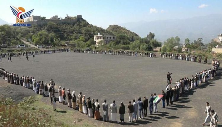 في ذات السياق، نظم أحفاد بلال في محافظة إب وقفة تضامنية مع الشعب الفلسطيني، وتأييدا لعملية “طوفان الأقصى”، التي تنفذها حركات المقاومة ضد العدو الصهيوني – الأمريكي.