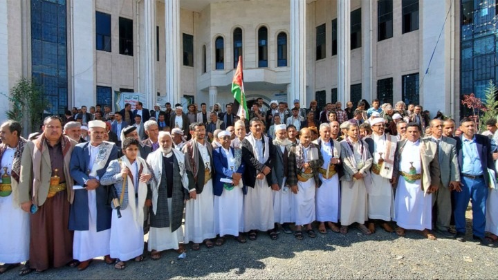 وبارك بيان الوقفة عمليات الجيش اليمني المساندة للشعب الفلسطيني والتي تستهدف الكيان الصهيوني المجرم بالصواريخ الباليستية والمجنحة والطيران المسير .