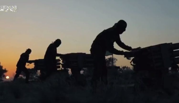 ونشرت سرايا القدس مشاهد من قصف الحشود العسكرية المتوغلة في “نتساريم” ومحيط عمارة بكرون بصواريخ (بدر 1).