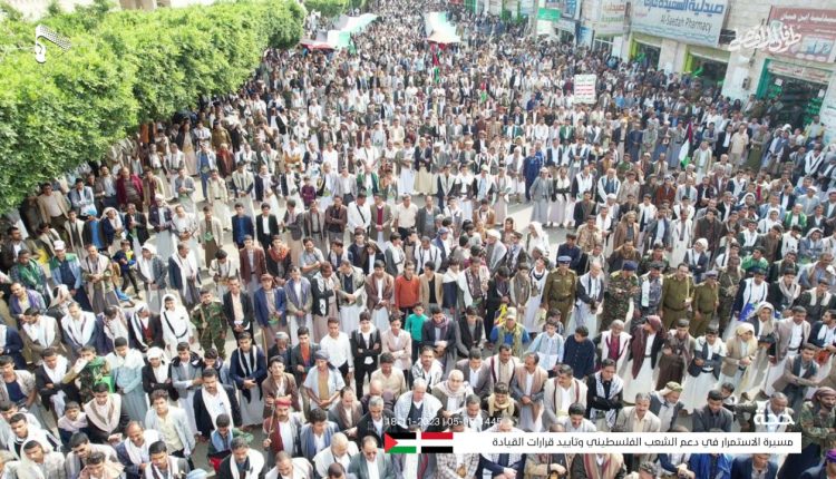 شاهد بالصور.. مسيرة حاشدة بحجة دعماً لصمود الشعب الفلسطيني وتأييداً لقرارات القيادة الثورية (تفاصيل)
