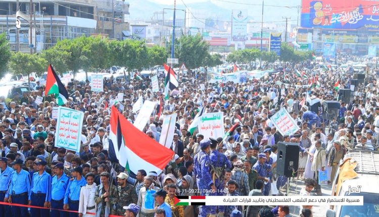 أبناء تعز يحتشدون في مسيرة جماهيرية دعماً لصمود الشعب الفلسطيني وتأييداً لقرارات القيادة الثورية