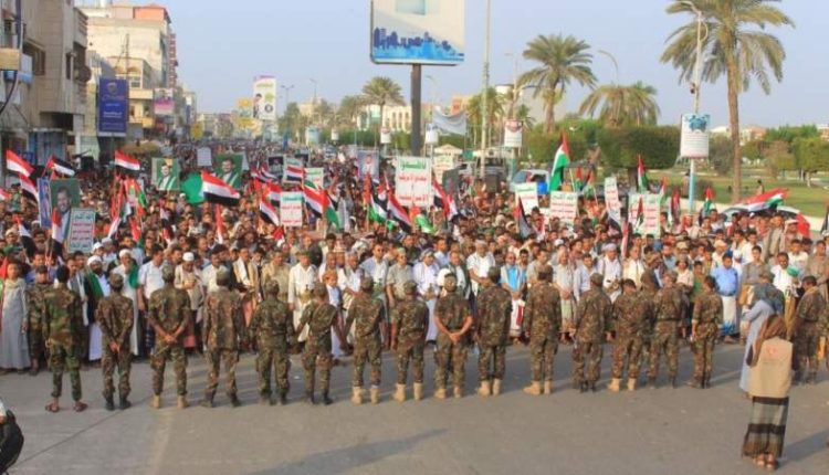 مسيرة جماهيرية كبرى في الحديدة دعماً لصمود الشعب الفلسطيني وتأييدا لقرارات القيادة