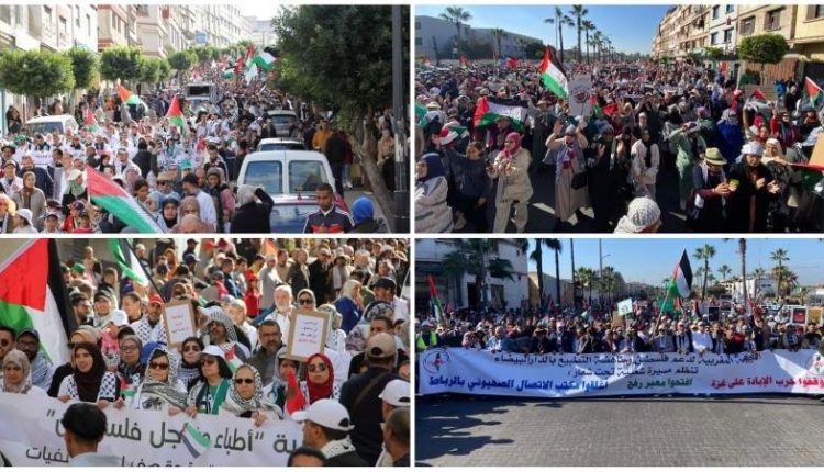 شهدت مدن مغربية اليوم ، مسيرات حاشدة دعماً وتضامناً مع الشعب الفلسطيني من أبناء غزة، ورفضاً للتطبيع.