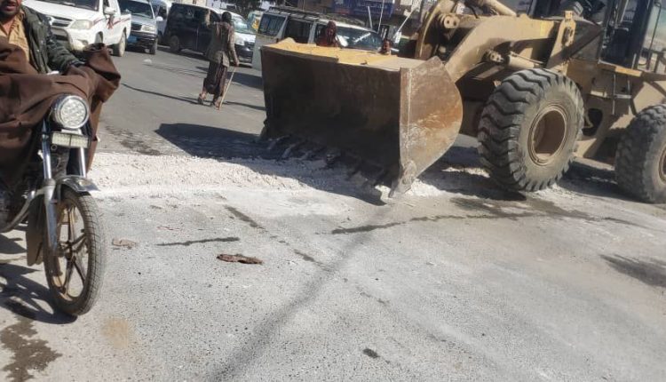 أشغال محافظة صنعاء ينفذ حملة لإزالة المطبات من خط صنعاء تعز