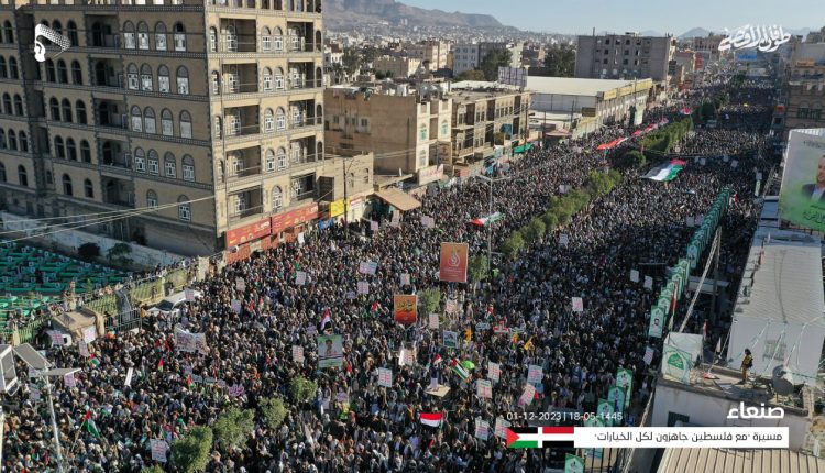 ورفعت الحشود المشاركة في المسيرة الشعارات المعبرة عن موقف الشعب اليمني المساند والداعم للمقاومة الفلسطينية في اتخاذ كل الخيارات المناسبة لردع العدو الصهيوني الذي استأنف عدوانه الوحشي والبربري على قطاع غزة مرتكبا المزيد من المجازر بحق الأطفال والنساء.