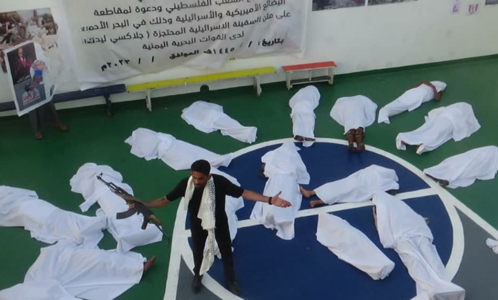 وجسد الفنانون من خلال هذا العمل الفني الثقافي، أحد صور التضامن اليمني من على متن السفينة الاسرائيلية التي استولى عليها أبطال القوات المسلحة في إطار العمليات التي يتم تنفيذها لنصرة الشعب والمقاومة الفلسطينية.