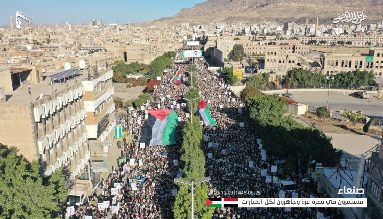 وحيت الحشود الغفيرة، العمليات البطولية التي تنفذها فصائل المقاومة الفلسطينية والتي تكبد العدو الصهيوني الخسائر الفادحة في العدة والعتاد والأرواح، وكذا استمرار عمليات القوات المسلحة اليمنية ضد أهداف الكيان الغاصب في الأراضي المحتلة.