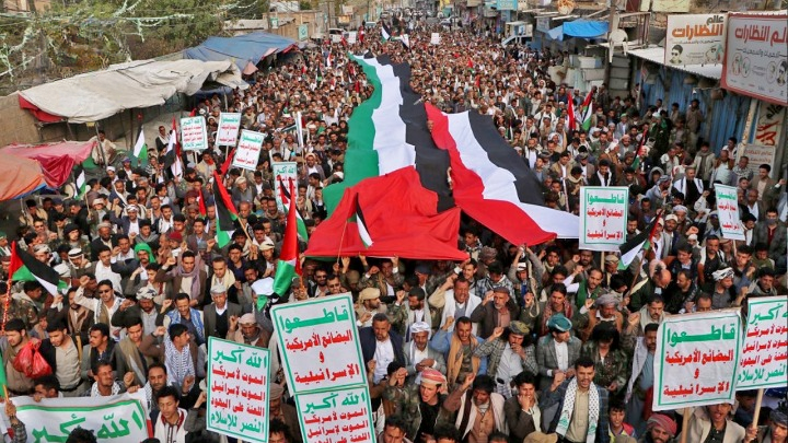أبناء ذمار يحتشدون في مسيرة جماهيرية نصرة لغزة وتأكيداً على الوقوف إلى جانب أبناء الشعب الفلسطيني