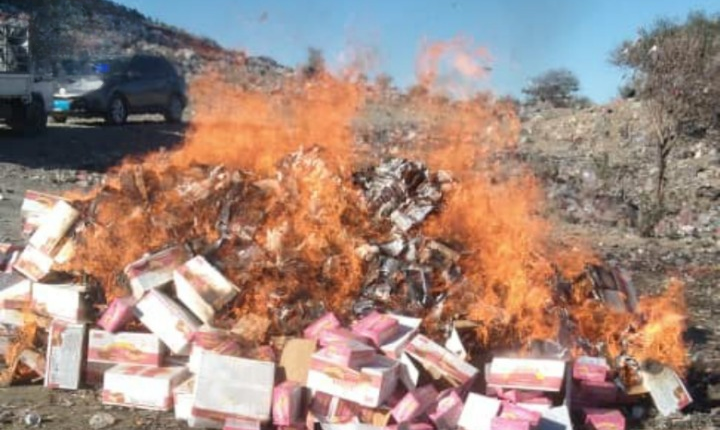 كما تم اتلاف 3 آلاف كرتون عصير مانجو ورمان غير مطابقة للمواصفات القياسية المعتمدة من حيث ارتفاع مادة السكارين وكذا اتلاف كمية 9 الاف كيس من البفك بنكهة الجبنة غير مطابقة للمواصفات القياسية المعتمدة من حيث إرتفاع محتوى اللون الصناعي.