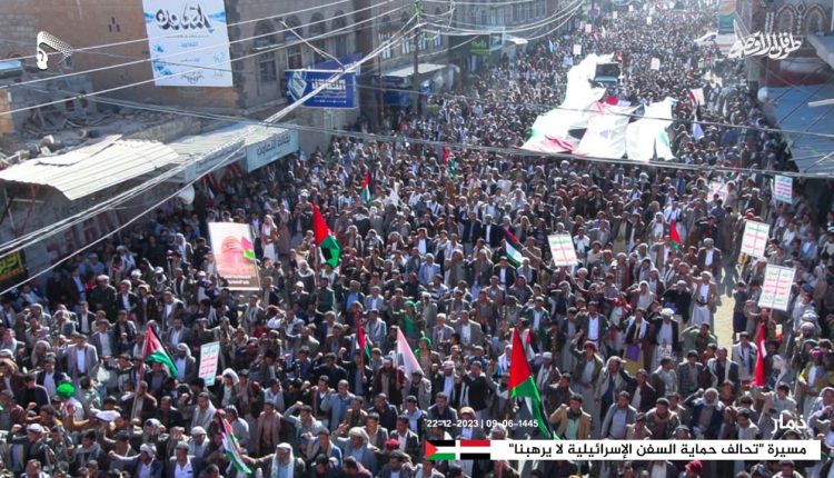 مسيرة جماهيرية حاشدة بذمار تحت شعار “تحالف حماية السفن الإسرائيلية لا يرهبنا” (تفاصيل+صور)
