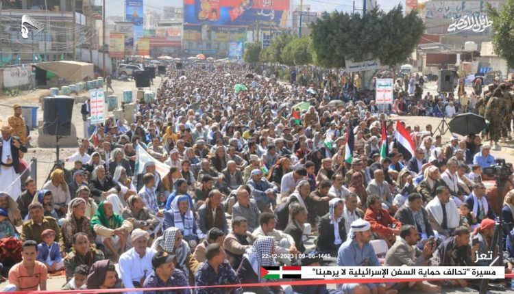 شاهد بالصور.. أبناء تعز يحتشدون في مسيرة “تحالف حماية السفن الإسرائيلية لن يرهبنا” تأكيداً على التضامن مع الشعب الفلسطيني
