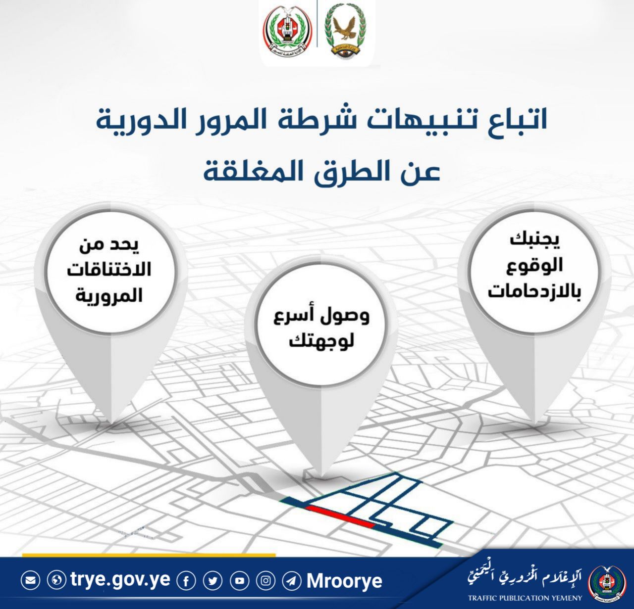 منوعات أخي السائق| هذا ما يحققه لك اتباع تنبيهات شرطة المرور عن الطرق المغلقة (صورة) يمانيون../ أخي السائق.. اتباع تنبيهات شرطة المرور عن الطرق المغلقة يحقق لك: #ولا_تمش_في_الأرض_مرحا #الادارة_العامة_للمرور #الإعلام_المروري_اليمني # شرطة المرور#الإعلام المروري اليمني#تعليمات المرور#ولا تمش في الأرض مرحاالإدارة العامة للمرور Share