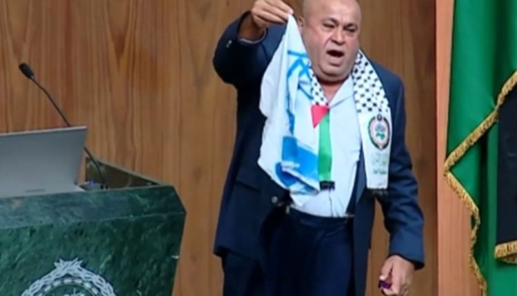نائب أردني يحرق علم الكيان المحتل خلال جلسة البرلمان العربي