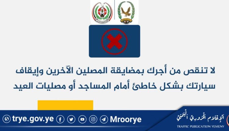 أخي السائق.. لا تنقص من أجرك بمضايقة المصلين الآخرين وإيقاف سيارتك بشكل خاطئ أمام المساجد او مصليات العيد
