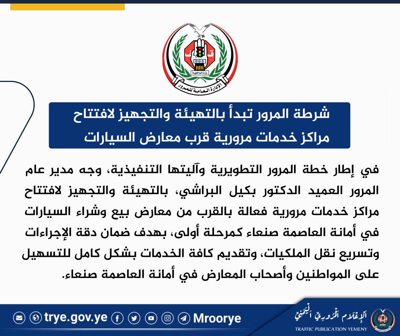 أعلنت شرطة المرور أنها تعتزم فتح مراكز خدمات مرورية قرب معارض السيارات، وذلك لتقديم الخدمات وتسهيل الإجراءات على المواطنين وأصحاب المعارض.