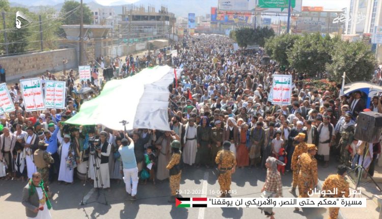 وأكدوا استمرار الشعب اليمني في نصرة فلسطين ودعم المقاومة الباسلة وخوض المعركة المقدسة ضد الكيان الغاصب من خلال عمليات القوات المسلحة في استهداف عمق العدو بالأراضي المحتلة واستهداف القوات البحرية للسفن الإسرائيلية ومنعها من المرور في البحر الأحمر، وكذا السفن المتجهة إلى موانئه حتى إيقاف العدوان الأمريكي الصهيوني ورفع الحصار عن غزة والسماح بدخول المساعدات الغذائية والدواء إلى سكان القطاع.