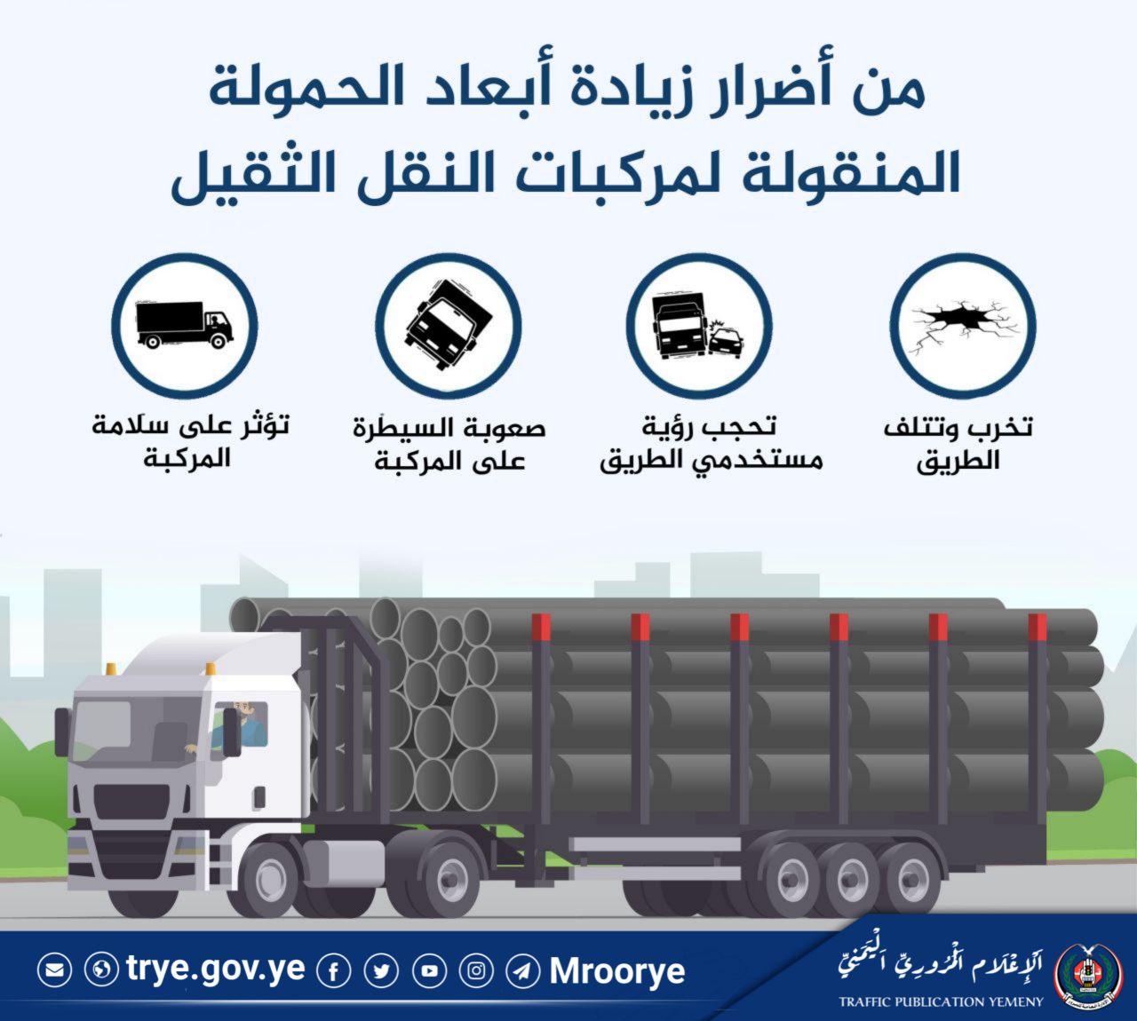 منوعات أخي السائق.. تعرف على أضرار زيادة أبعاد الحمولة المنقولة لمركبات النقل الثقيل أخي السائق.. تعرف على أضرار زيادة أبعاد الحمولة المنقولة لمركبات النقل الثقيل #ولا_تمش_في_الأرض_مرحا #الادارة_العامة_للمرور #الإعلام_المروري_اليمني # حملة التوعية المرورية#ولا تمش في الأرض مرحاالإدارة العامة للمرور Share