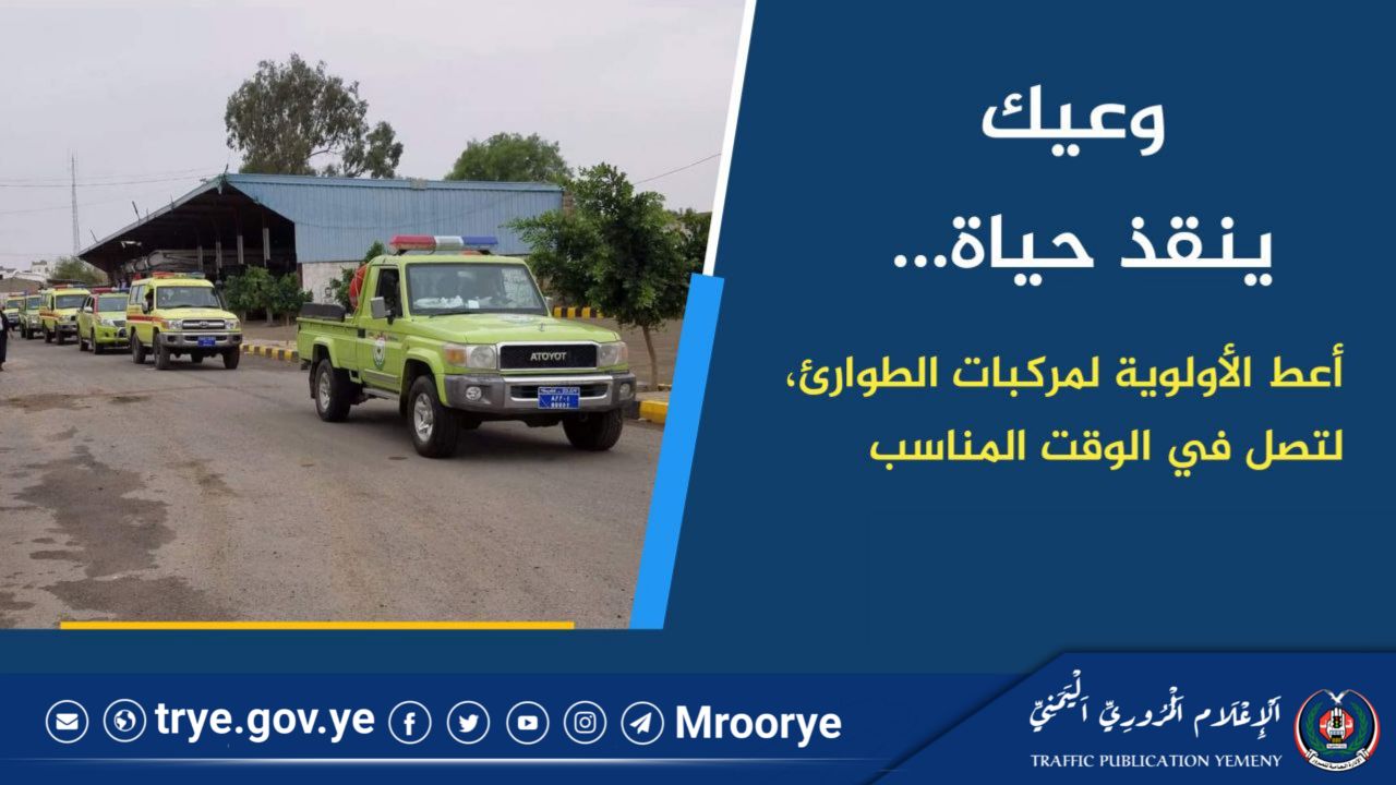 منوعات أخي السائق: وعيك ينقذ حياة.. أعط الأولوية لمركبات الطوارئ لتصل في الوقت المناسب أخي السائق.. وعيك ينقذ حياة.. أعط الأولوية لمركبات الطوارئ لتصل في الوقت المناسب #ولا_تمش_في_الأرض_مرحا #الادارة_العامة_للمرور #الإعلام_المروري_اليمني # حملة التوعية المرورية#ولا تمش في الأرض مرحاالإدارة العامة للمرور Share