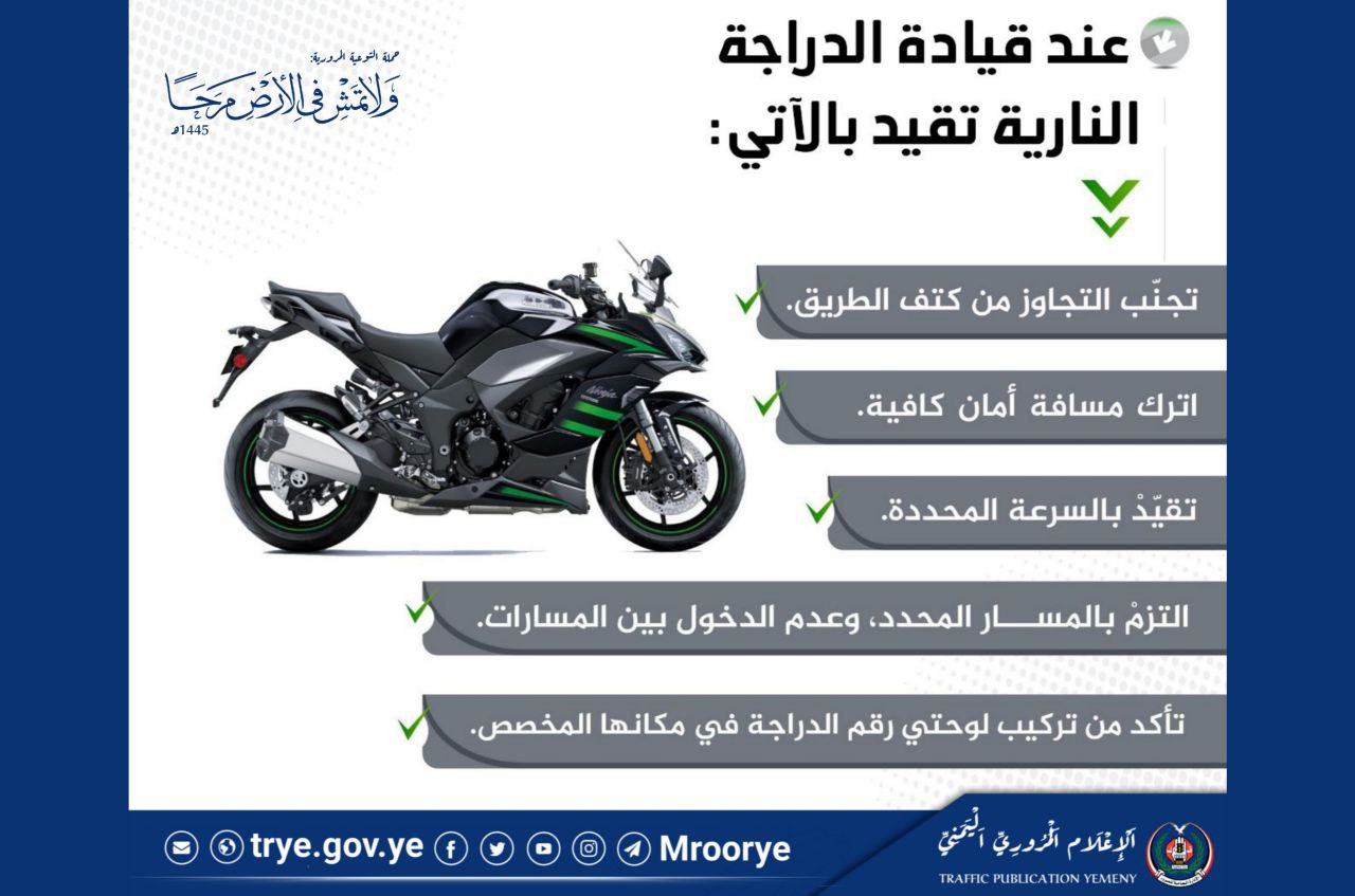 منوعات أخي السائق.. عند قيادة الدراجة النارية تقيد بالآتي أخي السائق.. عند قيادة الدراجة النارية تقيد بالآتي #ولا_تمش_في_الأرض_مرحا #الادارة_العامة_للمرور #الإعلام_المروري_اليمني # حملة التوعية المرورية#ولا تمش في الأرض مرحاالإدارة العامة للمرور Share