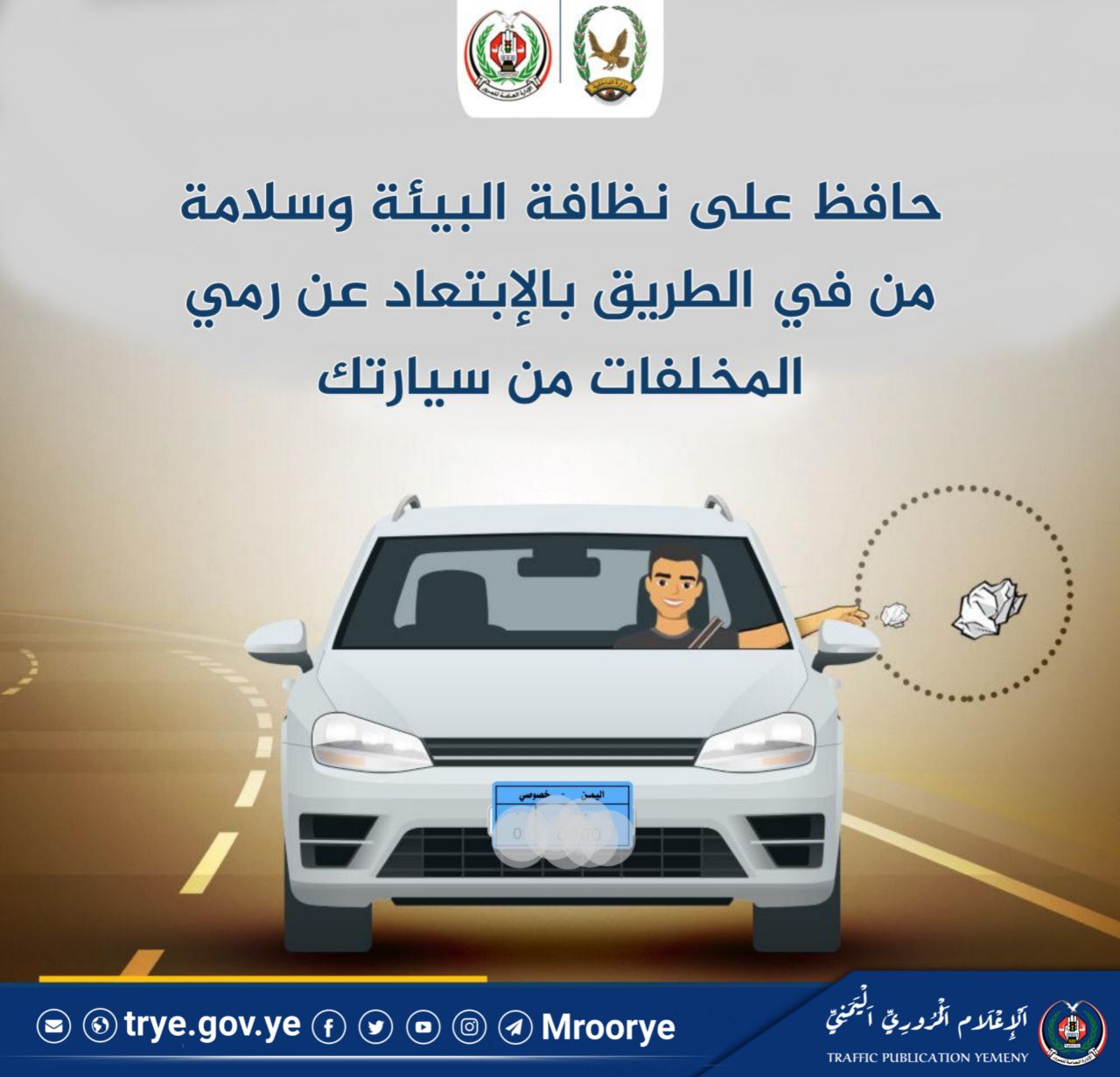 منوعات أخي السائق.. حافظ على نظافة البيئة وابتعد عن رمي المخلفات من سيارتك أخي السائق.. حافظ على نظافة البيئة وسلامة من في الطريق بالابتعاد عن رمي المخلفات من سيارتك #ولا_تمش_في_الأرض_مرحا #الادارة_العامة_للمرور #الإعلام_المروري_اليمني # حملة التوعية المرورية#ولا تمش في الأرض مرحاالإدارة العامة للمرور Share