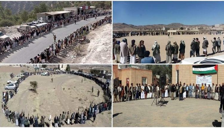 وصدر عن اللقاءات والوقفات التي نظمها أبناء مناطق “حي روما وقهار مدينة ذمار وجبل الدار وذمار القرن مديرية عنس، والشرقي مديرية جبل الشرق، والسواد وبني قوس والعابسية والشبطان مديرية الحداء ومخلاف بني حي مديرية وصاب السافل ومخلاف الجبجب مديرية وصاب العالي، والمدراج في مديرية جهران ونجاح والجنبين السافل مديرية مغرب عنس محافظة ذمار، بيانات استنكرت الاعتداء الأمريكي الإجرامي على زوارق للقوات البحرية اليمنية خلال أداء مهامها في البحر الأحمر، في جريمة لا يمكن السكوت عنها.