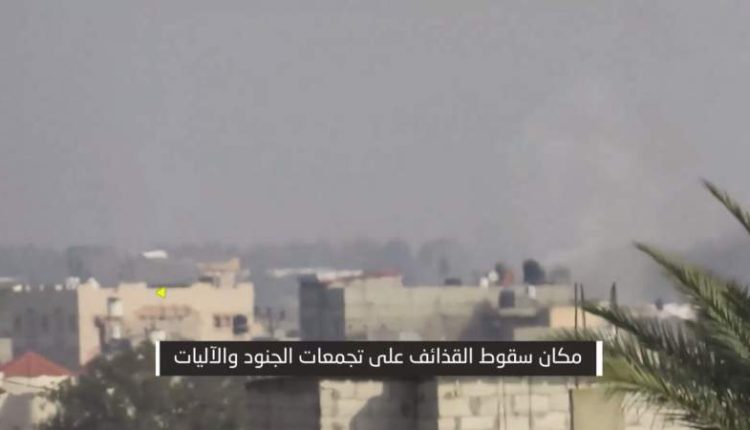 شاهد | قصف سرايا القدس وكتائب القسام لتجمع آليات وجنود بخانيونس (فيديو)