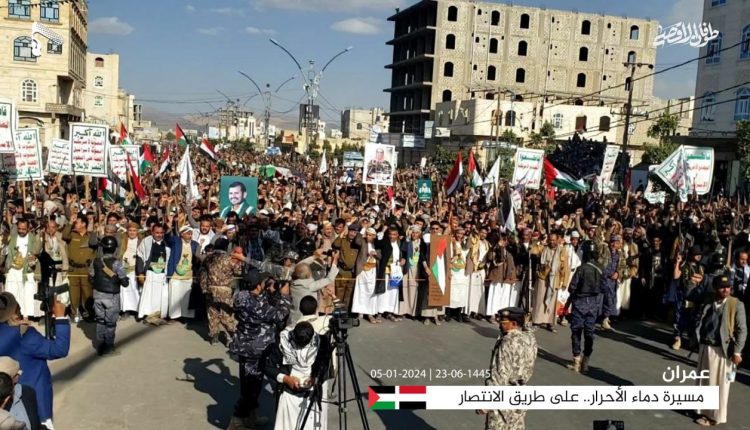 مسيرة جماهيرية حاشدة في عمران دعماً للشعب الفلسطيني وإسناداً للمجاهدين في غزة