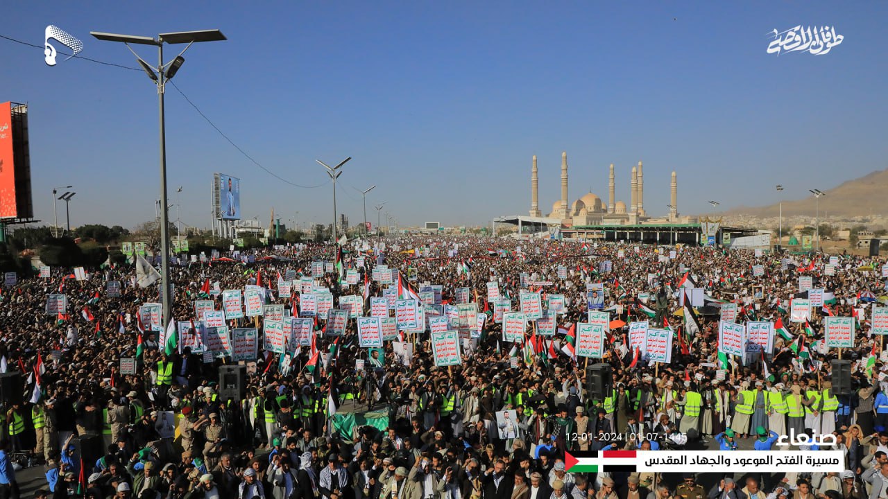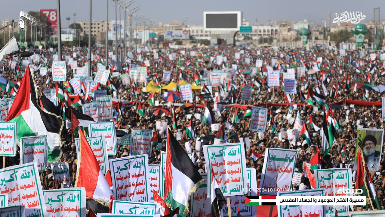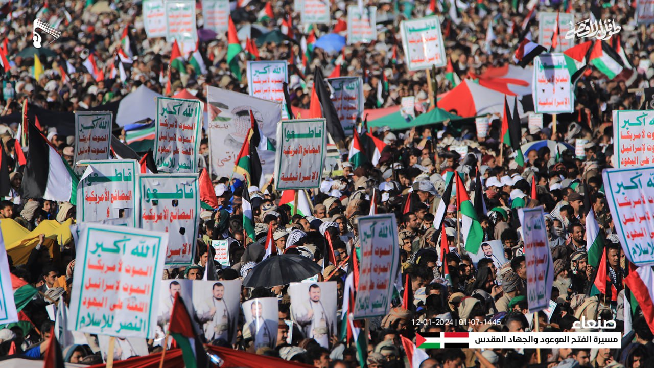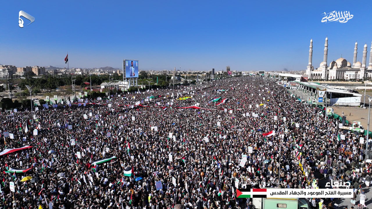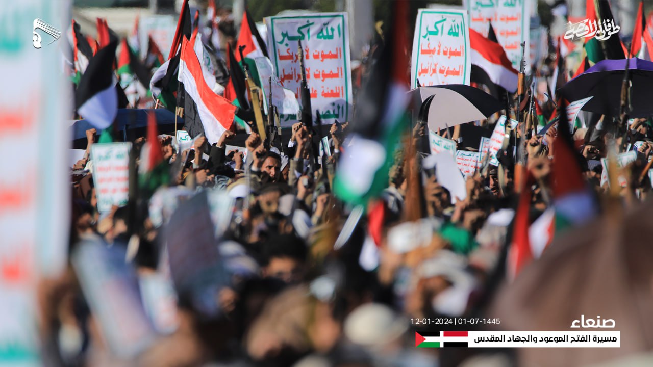 وأكدت استمرار خروج الشعب اليمني وثبات مواقفه الداعمة والمساندة للقضية الفلسطينية ونصرة مظلومية الشعب الفلسطيني وتأييد معركة “طوفان الأقصى”، وإسناد المجاهدين في غزة وفلسطين المحتلة حتى تحقيق النصر ودحر الكيان الصهيوني الغاصب.