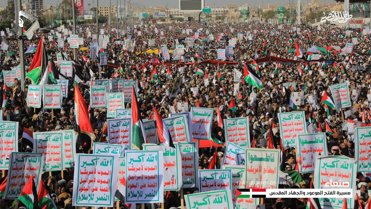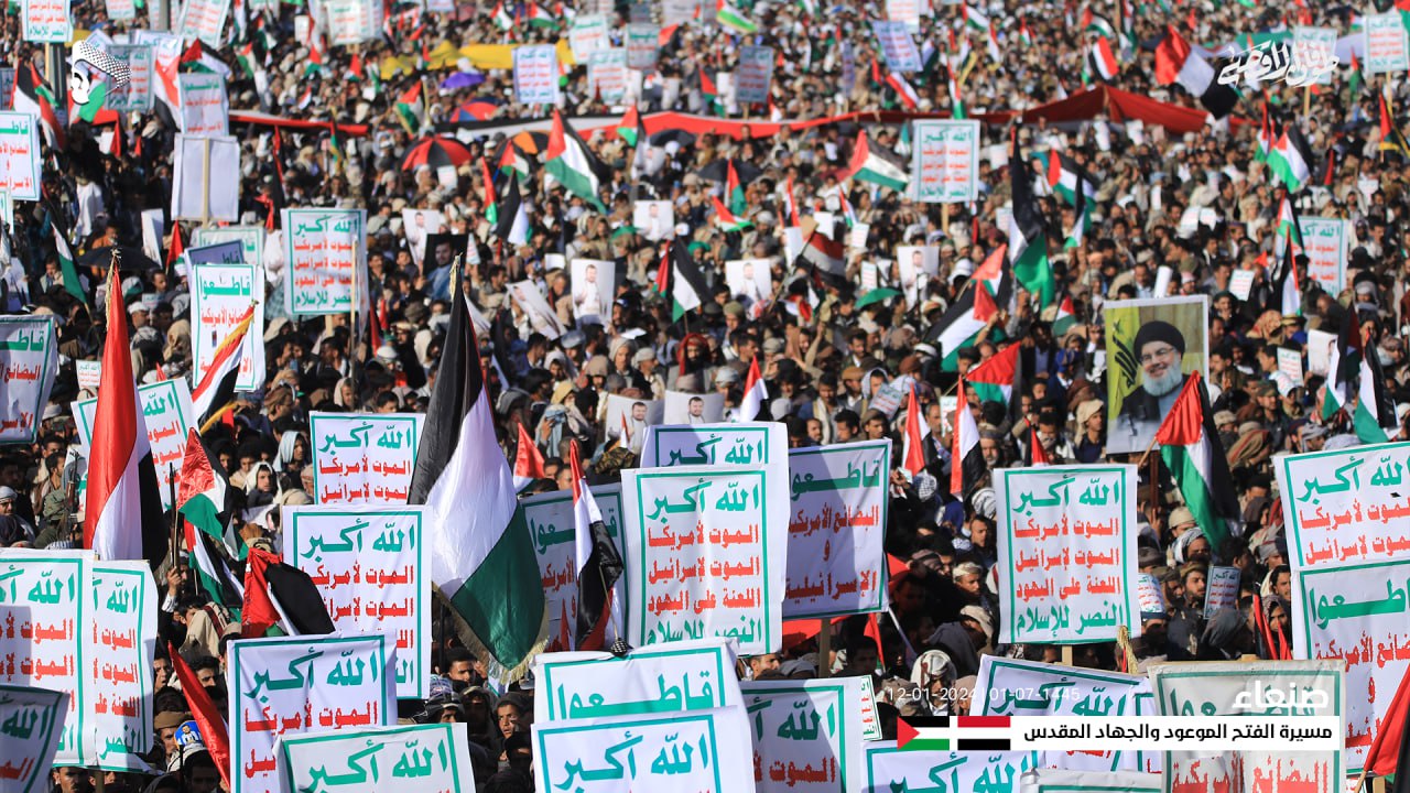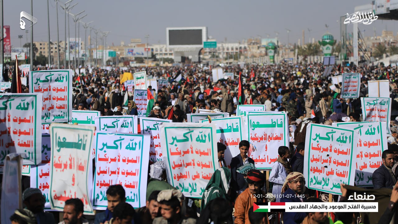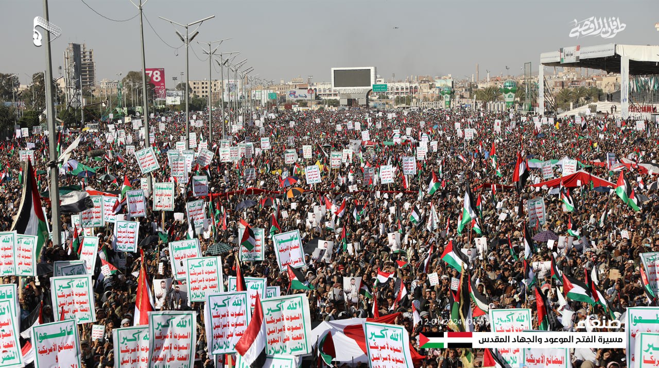 وأعلن المشاركون في المسيرة الكبرى، النفير العام والاستعداد الكامل للجهاد وخوض المواجهة المباشرة مع العدو الأمريكي والبريطاني والصهيوني، برا وبحرا وجوا.