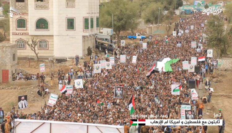 أبناء تعز يحتشدون في مسيرة جماهيرية كبرى تضامناً مع الشعب الفلسطيني ومقاومته الباسلة (تفاصيل+صور)