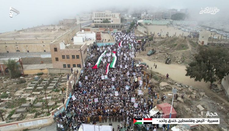شهدت محافظة حجة اليوم مسيرات جماهيرية ووقفات حاشدة تضامناً مع الشعب الفلسطيني ودعماً للمقاومة الباسلة تحت شعار” اليمن وفلسطين خندق واحد”.