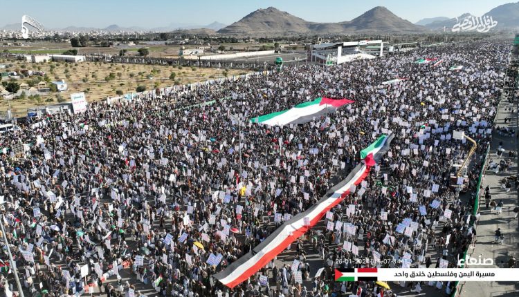 في رسالة تحدي إلى أمريكا وبريطانيا.. شاهد حشود صنعاء المليونية تنشد “يا طوائر حلّقي في سمانا حلّقي.. حلقي هيهات منّا المذّله والأنين”، وتفوض القائد منشدةً “بعد إبن طه”
