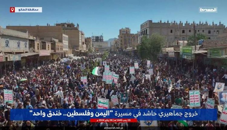 الضالع.. مسيرات حاشدة في دمت وجبن ووقفات في الحشاء دعما لفلسطين