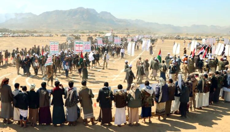 نظم أبناء مديرية نهم بمحافظة صنعاء، اليوم وقفة قبلية مسلحة دعماً للشعب الفلسطيني ونصرة لمقاومته الباسلة، ورفضا للعدوان الأمريكي البريطاني على اليمن.