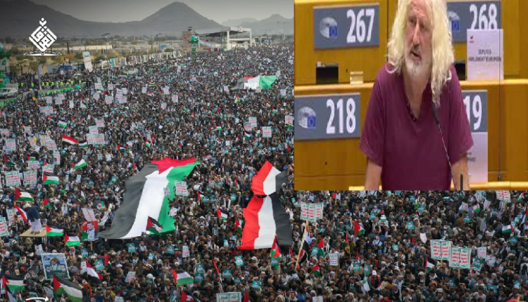 وقال عضو البرلمان الأوروبي، الأيرلندي، مايك والاس في رسالته “يلهم اليمنيين اليوم العالم”، لافتا إلى إرث الإمبريالية البريطانية الذي يفهمه الأيرلنديون جيدا- وهو الذي لا يزال يحدد الظروف التي يعيشها الفلسطينيون واليمنيون والكثير من الناس في جميع أنحاء العالم والتي لا تطاق، مشيرا إلى الدعم الغربي غير المشروط لإسرائيل، والذي يتضح أكثر من خلال الهجمات الوحشية الجبانة وغير القانونية على اليمن من قبل الولايات المتحدة وبريطانيا.