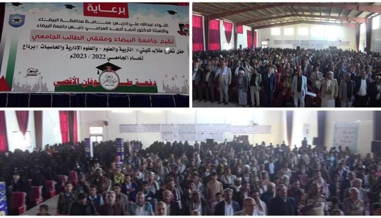 واعتبر الدكتور العرامي، تخرج دفعة جديدة باسم “طوفان الأقصى”، إضافة نوعية لجامعة البيضاء بمختلف كلياتها، لافتاً إلى دلالة تسمية الدفعة ” طوفان الأقصى” والذي يعكس وفاء طلاب وطالبات الجامعة لفلسطين وغزة، والقضية الفلسطينية الأولى والمركزية لليمن.