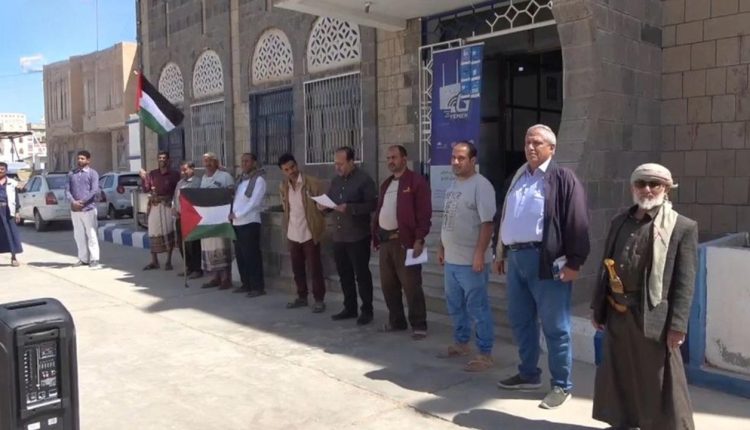 البيضاء .. وقفة احتجاجية لموظفي الاتصالات تنديداً بالجرائم الصهيونية في غزة