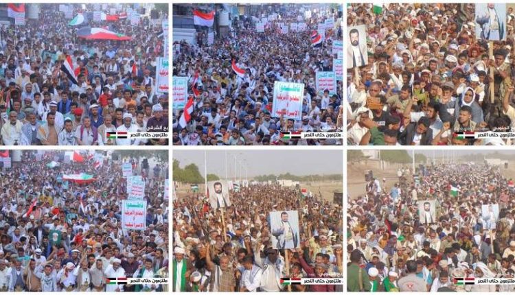 شاهد بالصور.. حشود جماهيرية كبرى بالحديدة في مسيرات “مع غزة ملتزمون حتى النصر”