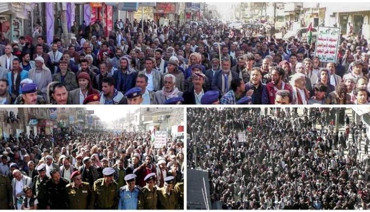 شهدت مدينة يريم بمحافظة إب اليوم السبت، مسيرة حاشدة لأبناء مديريات المربع الشمالي “يريم، السدة، النادرة، الرضمة بعنوان” اليمن مع غزة ملتزمون حتى النصر”، واستمراراً لنصرة الشعب والمقاومة الفلسطينية.