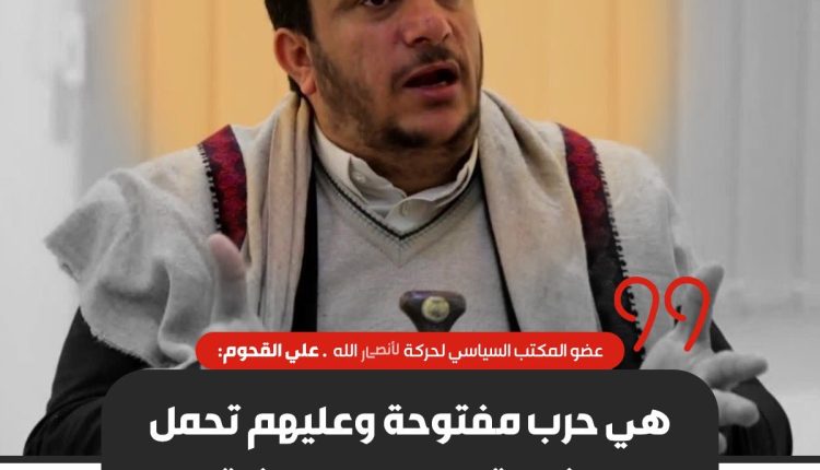 قال عضو المكتب السياسي لأنصار الله، علي القحوم، تعليقاً على العدوان الأميركي البريطاني الأخير على اليمن، إنّه “حرب مفتوحة، وعليهم تحمل الضربات والردود اليمنية”.
