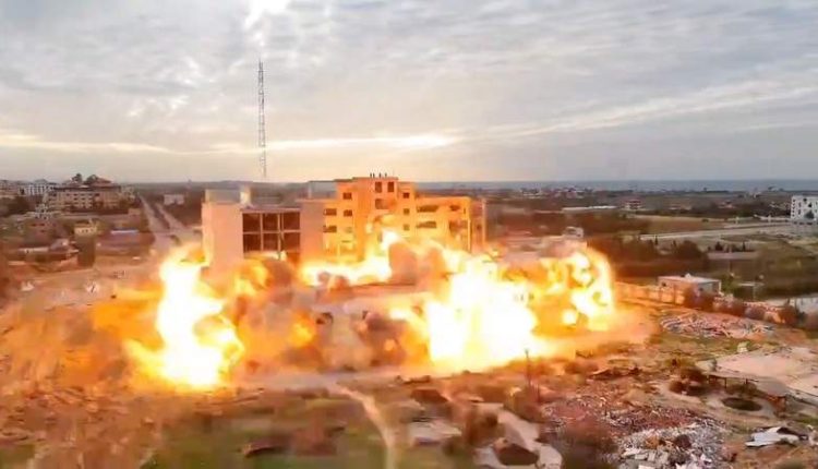 جنود العدو الصهيوني يحرقون المنازل في غزة