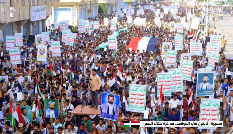 وأكد بيان صادر عن المسيرات، استمرار الشعب اليمني في فعالياته الشعبية والجماهيرية وثباته على موقفه مع الشعب الفلسطيني، ودعم عمليات القوات المسلحة في البر والبحر وقصف المدن الفلسطينية المحتلة واستهداف السفن الإسرائيلية والأمريكية.
