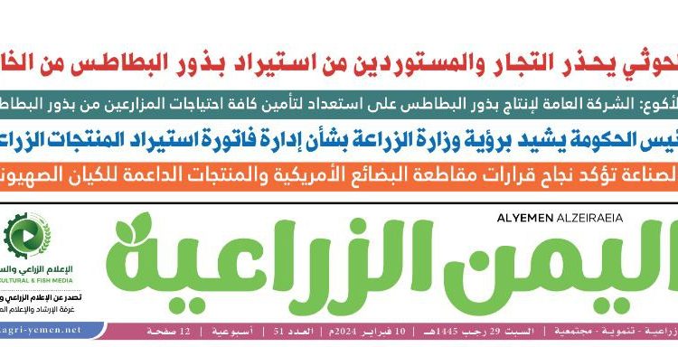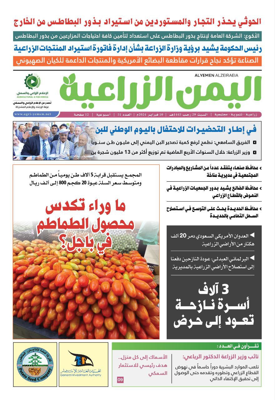 صــدور عــدد جديد من الصـحيفة الأسبوعية “اليـمن الـزراعيـة”