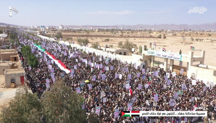 شهدت محافظة صعدة، اليوم، خروج 11 مسيرة جماهيرية حاشدة في مركز المحافظة والمديريات تحت شعار “ساحاتنا جهاد .. ثابتون مع غزة حتى النصر”.