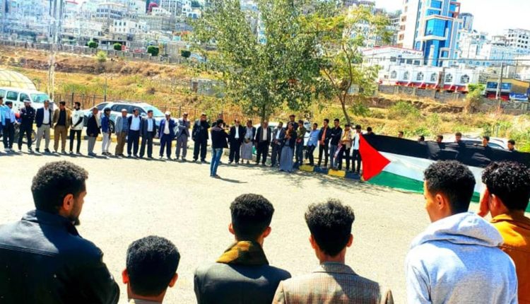 وقفة حاشدة بكلية الزراعة بجامعة إب تضامنا مع الشعب الفلسطيني