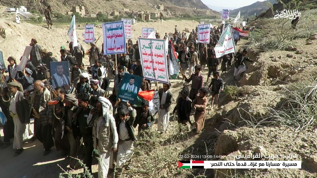 وأكد بيان صادر عن المسيرة، أنه وانطلاقاً من الموقف الثابت والمبدئي والالتزام الديني والإنساني والهوية الإيمانية اليمنية يواصل الشعب اليمني فعالياته وأنشطته المتنوعة نصرة للشعب الفلسطيني وتخريج آلاف المؤهلين والمدربين تعبئةً واستنفاراً للمعركة المقدسة في مواجهة اللوبي الصهيوني اليهودي.