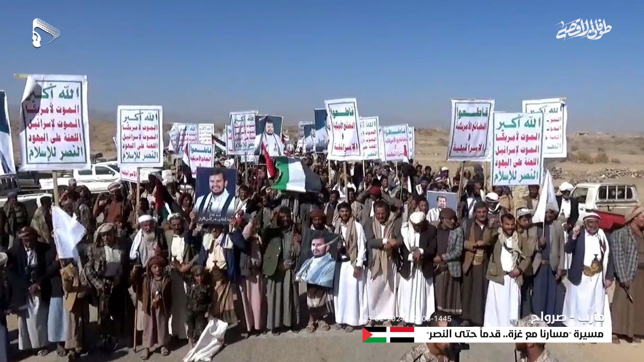 وخرج أبناء مديريات المربع الجنوبي في مسيرة حاشدة بساحة الجوبة، رفع المشاركون فيها شعارات البراءة من أمريكا وإسرائيل، مؤكدين الجهوزية لتنفيذ كافة الخيارات التي تتخذها قيادة الثورة نصرة لغزة والأراضي المحتلة.
